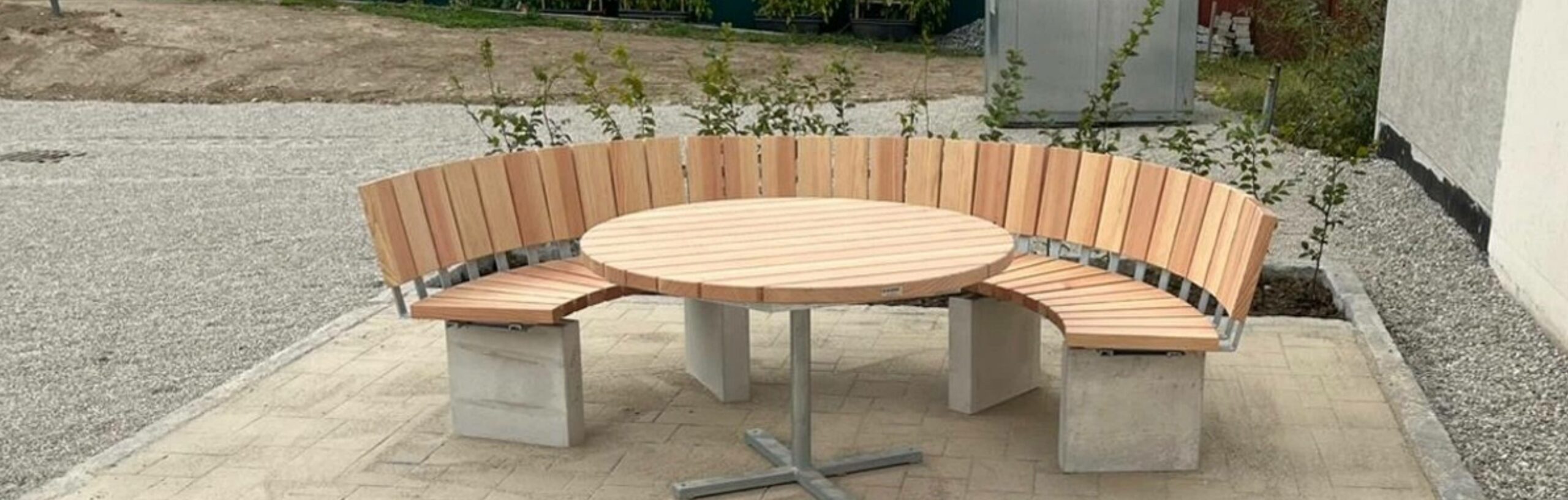 In der Dorfmitte in Erlbach ist ein neuer Gesellschaftsplatz entstanden. Mit kunstvoll geschnitzten Bänken lädt hier ein besonderes Schmuckstück zum Treffen und Verweilen ein.